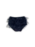 Chic crushed cotton polyester bloomers with tulle details in black. Features a roomy fit, concealed elastic waistband and elastic leg openings.