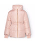 Water-repellent pink jacket in recycled polyester with a beautiful print of a butterfly on the back. The jacket has a stand-up collar with an integrated hood and a front zipper. It has side pockets and an adjustable elastic waistband on the inside, which creates a nice silhouette and also helps to retain heat. The jacket is lined with pearl padding, a recycled polyester filling that ensures consistent softness, optimal warmth, and easy maintenance when washed.