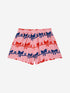 Cut pink shorts with pretty all over blue and red connected bows print. Pair with the matching top for a sweet set.