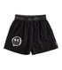 Airy, unisex shorts in black with a cool face applique at left leg. Features a logo waistband and loose, but not baggy, fit. Made from 100% cotton voile.