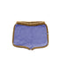 Retro style knit shorts in iris blue with a caramel colored trim along the waist and sides. Pair with any of the tees within the collection for a fun look.