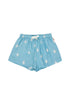 Cute bird friends fly over Santorini giving us the best welcome to the island. Light cream print on washed blue base trunks. They come with cosy elasticized waistband and contrast drawcord. Fully lined.