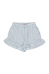 Pale blue airy cotton shorts with signature tiny cottons grid print in navy. Features an elasticized waist and ruffle trim legs. Pair with the matching top for a sweet set.