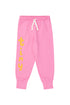 Cute and cozy pink sweatpants. Features elasticized waist with natural colored drawstring, ribbed cuffs at ankle and yellow "tiny" text on the right leg. Pair with the matching sweatshirt for a complete look.