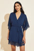 Ultra soft wrap style robe with delicate lace sleeves and lace trim on the hem.