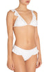 Pretty lined triangle bikini top. Features mini soft appliques, adjustable cups and ruffled shoulders. Pair with matching Bianca Torie bottoms here >