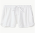 Ultra comfy shorts for lounging feature an elasticized waist with drawstring tie and loose cut with raised sides. Length is short for a leg lengthening effect.
