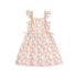 Classic pinafore in a pretty "climbing roses" floral print. Made from 100% cotton and fully lined, featuring flutter sleeves, mother-of-pearl buttons, delicate waist ties and subtle lace trim details.