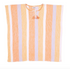 Lightweight poncho style cover up that can be used as a top over shorts or to throw over a bathing suit alone. Features a pretty striped pattern, stitching detail along the neckline and tassel trimmed tie. The fit is loose and flowy.