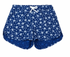 Cool aqua swim shorts with an all over white palms print. Features an elasticized drawstring waist, built in mesh, gym style cut and back pocket.