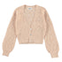 Pretty blush colored knit cardigan in a delicate knit pattern. Features long sleeves with volume, a v-neck front, a short fit and 3 button closure down the front.