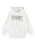 White oversized hoodie in soft organic cotton with a pouch pocket and ribbed edges. The hoodie features the text 'Future' on the front, written with sparkling rhinestones.