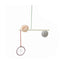 A modern mobile with various shapes and textures in soft colors. Hand made in Peru. 11 inches wide x 14 inches long; string s 45 inches long.