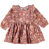 Sweet floral baby dress with ruffle trimmed shoulders, a gathered waist and full skirt.