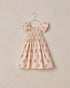 Pretty floral printed dress with bubble wing sleeves, a smocked bodice and a full volume skirt. Falls below the knee depending on height.