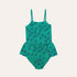 Cute daisy printed one piece with thin straps and a ruffle waist. Made from 98% cotton and 2% elastane for stretchy comfort.